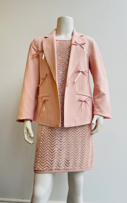 Giacca elegante rosa cipria con fiocchi in raso